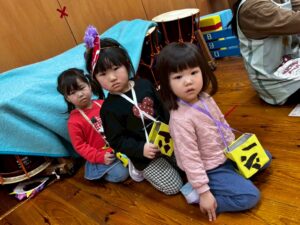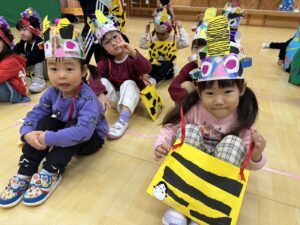 製作発表の後は・・・豆まきのお話を聞いて・・・園長先生の祈祷がありました(*^-^*)